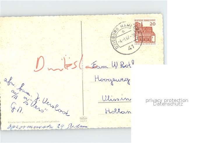 72302095 alte Postkarte MANNHEIM BW Rheinpartie Ludwigshafen postalisch gelaufen Erhaltung siehe scans KatCode: 11110008222000