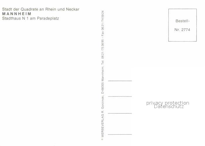 72762907 MANNHEIM BW Stadthaus am Paradeplatz postalisch nicht gelaufen Erhaltung siehe scans [AndreD76] KatCode: 11110008222000