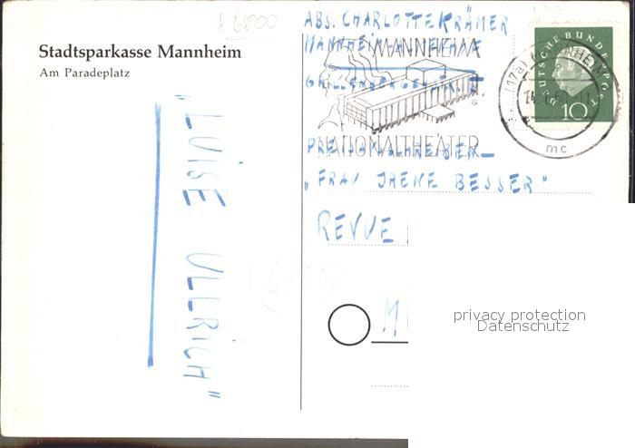 41801526 MANNHEIM BW Stadtsparkasse Paradeplatz postalisch gelaufen Alte Ansichtskarte Postkarte alte Postkarte Nata Katcode 11110008222000