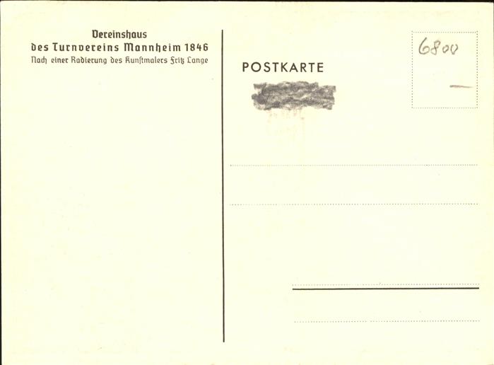 41311597 MANNHEIM BW Vereinshaus des Turnvereins Mannheim Kuenstlerkarte nach Radierung Fritz Lange postalisch nicht gelaufen gute Erhaltung Alte Ansichtskarte Postkarte hz_C Katcode 11110008222000