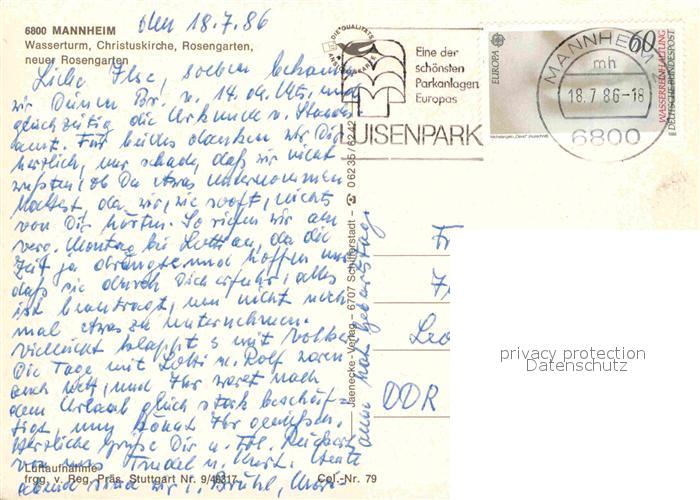 72743121 alte Postkarte MANNHEIM BW Wasserturm Christuskirche Rosengarten Fliegeraufnahme postalisch gelaufen Erhaltung siehe scans [FriedD77] KatCode: 11110008222000