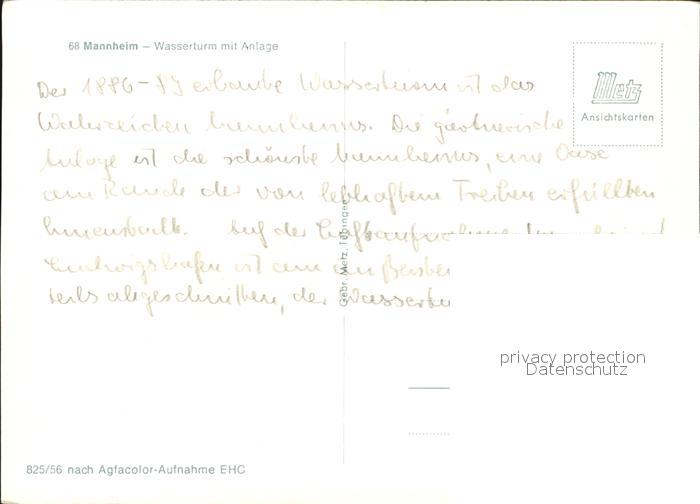 72592043 MANNHEIM BW Wasserturm mit Anlage Wasserspiele postalisch nicht gelaufen Erhaltung siehe scans [WerneD78] KatCode: 11110008222000