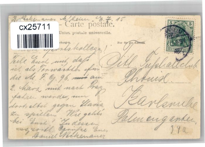 30826832 alte Postkarte Mannheim Friedrichsbruecke postalisch gelaufen KatCode: 11110008222000