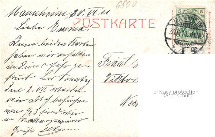 33090091 alte Postkarte Mannheim Hildastrasse postalisch gelaufen Erhaltung siehe scans [LiesaD40] KatCode: 11110008222000