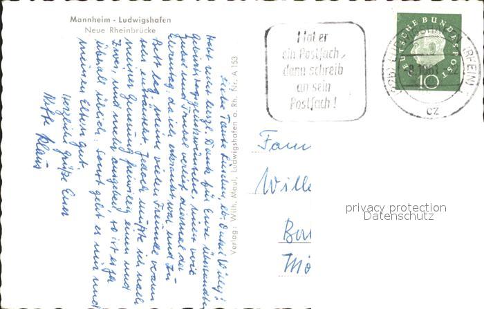 31728133 alte Postkarte Mannheim Neue Rheinbruecke postalisch gelaufen Erhaltung siehe scans KatCode: 11110008222000