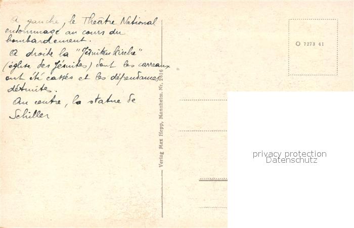 73558249 Mannheim Schillerplatz Denkmal Kirche postalisch nicht gelaufen Erhaltung siehe scans [FriedD77] KatCode: 11110008222000