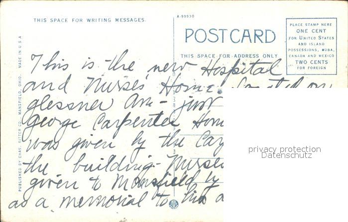 11688505 Mansfield Ohio General Hospital and Nurses Home postalisch nicht gelaufen Erhaltung siehe scans KatCode: 14140370000000