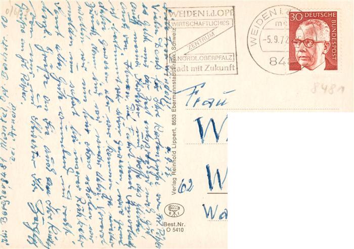 73887281 alte Postkarte Mantel Oberpfalz Partie an der Bruecke Huettnerstrasse Marktplatz Etzenrichterstrasse postalisch gelaufen Erhaltung siehe scans [FriedD77] KatCode: 11110009374134