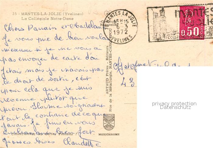 13521883 carte postale Mantes-la-Jolie Collegiale Notre Dame postalisch gelaufen Erhaltung siehe scans [KathaD81] KatCode: 11170078178361