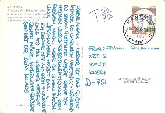 old postcard Mantova Marktplatz postalisch gelaufen Erhaltung siehe scans