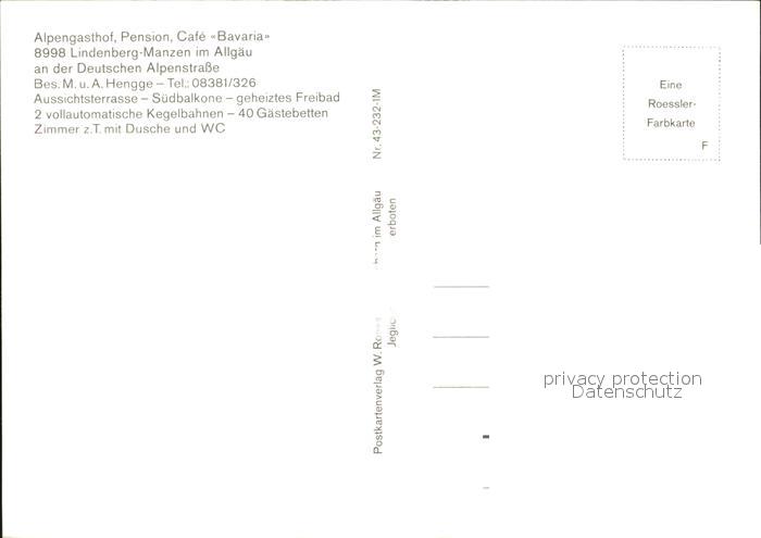 72452665 Manzen Allgaeu Alpengasthof Bavaria postalisch nicht gelaufen Erhaltung siehe scans KatCode: 11110009776117