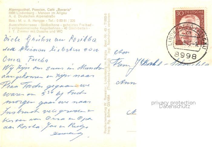73070430 alte Postkarte Manzen Allgaeu Alpengasthof Pension Bavaria postalisch gelaufen Erhaltung siehe scans [WerneD78] KatCode: 11110009776117