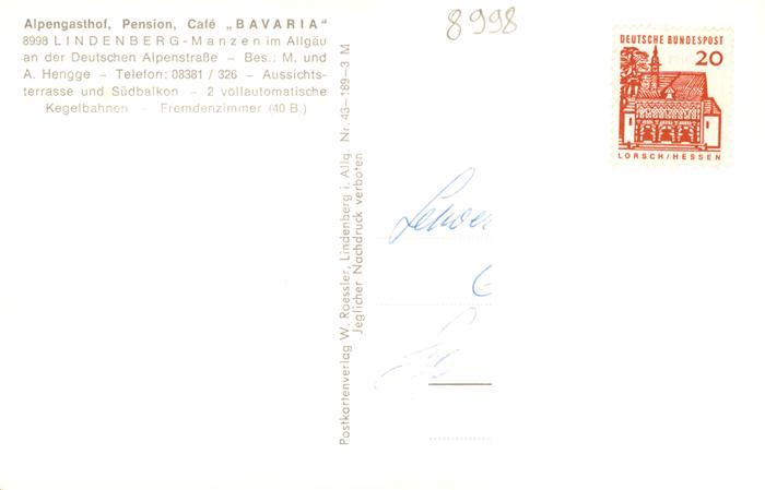 73880227 alte Postkarte Manzen Allgaeu Alpengasthof Pension Cafe Bavaria postalisch gelaufen Erhaltung siehe scans [WerneD78] KatCode: 11110009776117