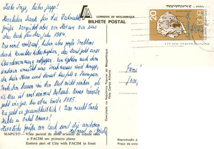 73872695 Maputo Laurenco Marques Mosambik Eastern part of city with Facim in front aerial view postalisch gelaufen Erhaltung siehe scans [FriedD77] old postcard Frie Katcode 18330