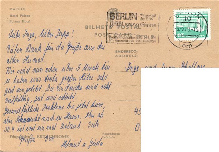 73872696 Maputo Laurenco Marques Mosambik Polana Hotel aerial view postalisch gelaufen Erhaltung siehe scans [FriedD77] old postcard Frie Katcode 18330