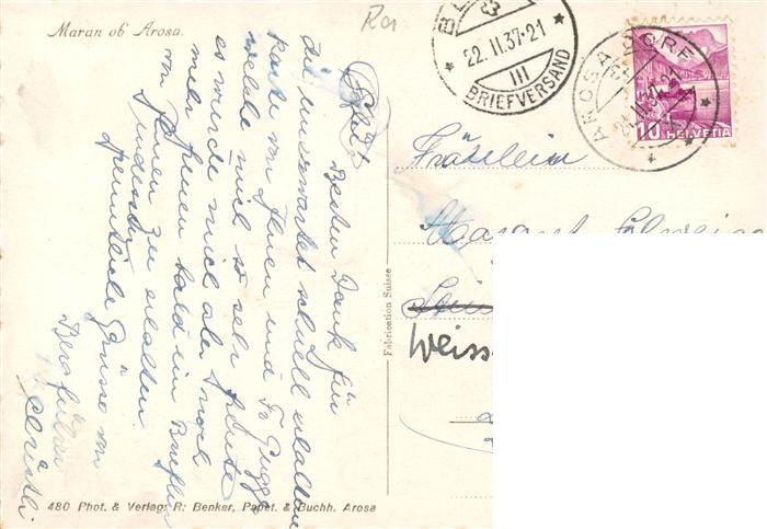 13871455 alte Postkarte Maran Arosa GR Berghuetten postalisch gelaufen Erhaltung siehe scans [WerneD78] KatCode: 11470100345296