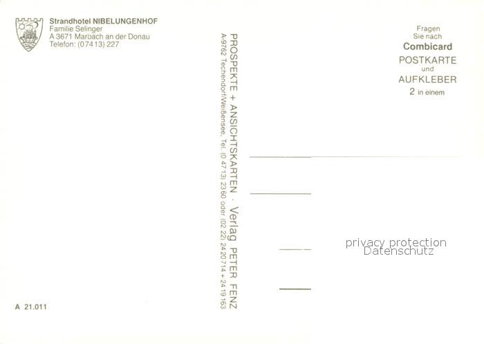 73269324 Marbach Donau Strandhotel Nibelungenhof Stadtpanorama Kloster Maria Taferl Burgruine postalisch nicht gelaufen Erhaltung siehe scans [FriedD77] KatCode: 11390121031522