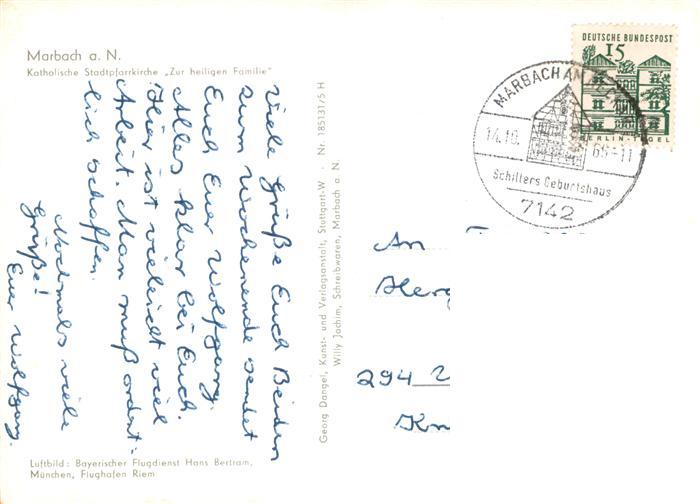 73940969 Marbach Neckar Kath Stadtpfarrkirche Zur heiligen Familie postalisch gelaufen Erhaltung siehe scans [WerneD78] alte Postkarte Wern Katcode 11110008118049