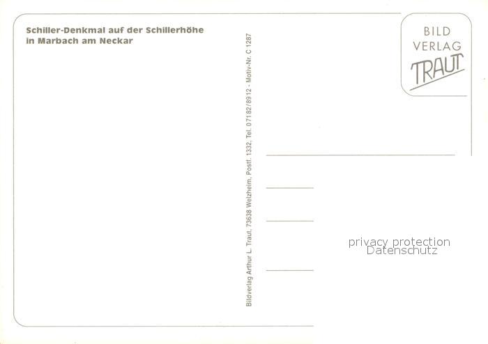 73213883 Marbach Neckar Schiller Denkmal auf der Schillerhoehe postalisch nicht gelaufen Erhaltung siehe scans [FriedD77] KatCode: 11110008118049