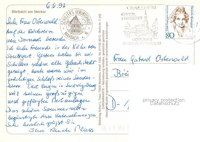 72684754 alte Postkarte Marbach Neckar Schiller- Geburtshaus Nationalmuseum Stadthalle postalisch gelaufen Erhaltung siehe scans [AndreD76] KatCode: 11110008118049