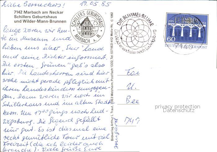 72574281 alte Postkarte Marbach Neckar Schiller Geburtshaus Wilder Mann Brunnen postalisch gelaufen Erhaltung siehe scans [KathaD79] KatCode: 11110008118049