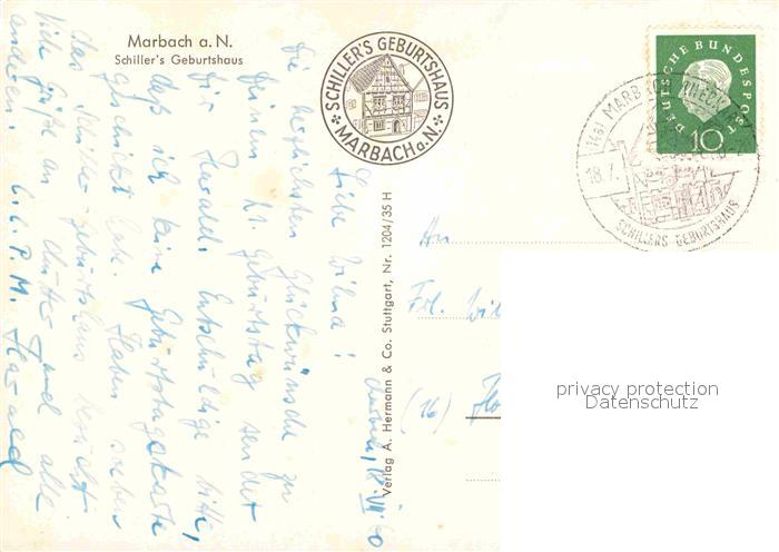 72859791 alte Postkarte Marbach Neckar Schiller Geburtshaus postalisch gelaufen Erhaltung siehe scans [NatalD47] KatCode: 11110008118049