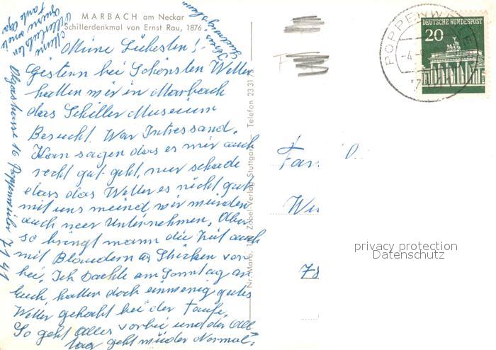 73318517 alte Postkarte Marbach Neckar Schillerdenkmal von Ernst Rau 1876 postalisch gelaufen Erhaltung siehe scans [FriedD77] KatCode: 11110008118049
