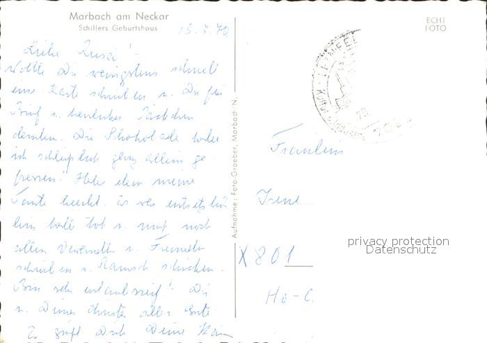 72365535 alte Postkarte Marbach Neckar Schillers Geburtshaus postalisch gelaufen Erhaltung siehe scans KatCode: 11110008118049