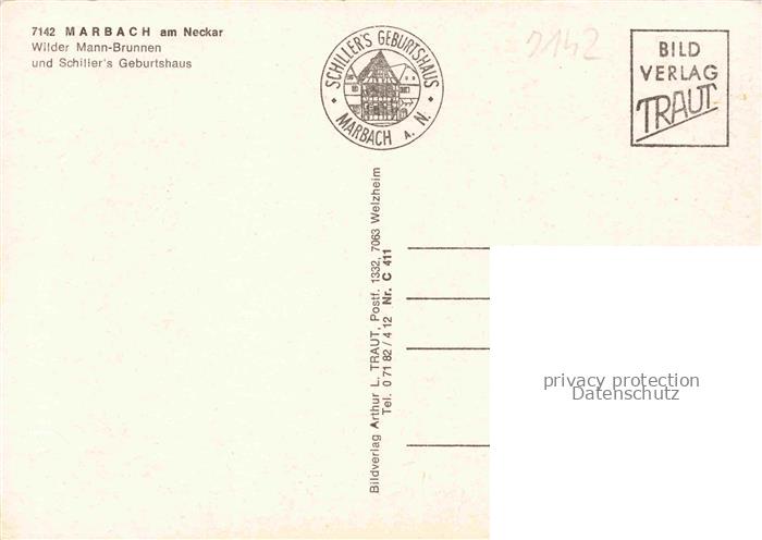 74053127 Marbach Neckar Wilder Mann Brunnen mit Schiller Geburtshaus postalisch nicht gelaufen Erhaltung siehe scans [WerneD78] KatCode: 11110008118049