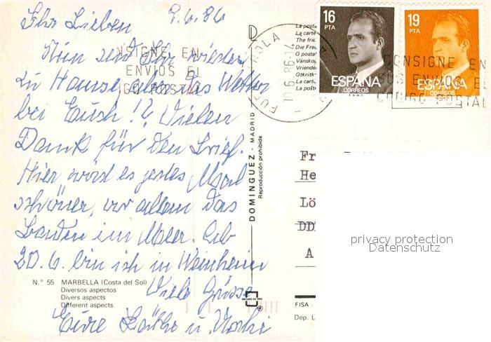 old postcard Marbella Andalucia postalisch gelaufen Erhaltung siehe scans [LiesaD40]