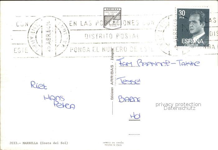 old postcard Marbella Andalucia postalisch gelaufen Erhaltung siehe scans
