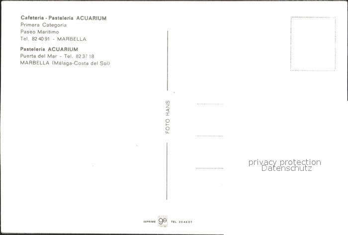 Marbella Andalucia Cafeteria Pasteleria Acuarium postalisch nicht gelaufen Erhaltung siehe scans