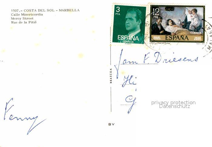 old postcard Marbella Andalucia Calle Misericordia postalisch gelaufen Erhaltung siehe scans [WerneD78]