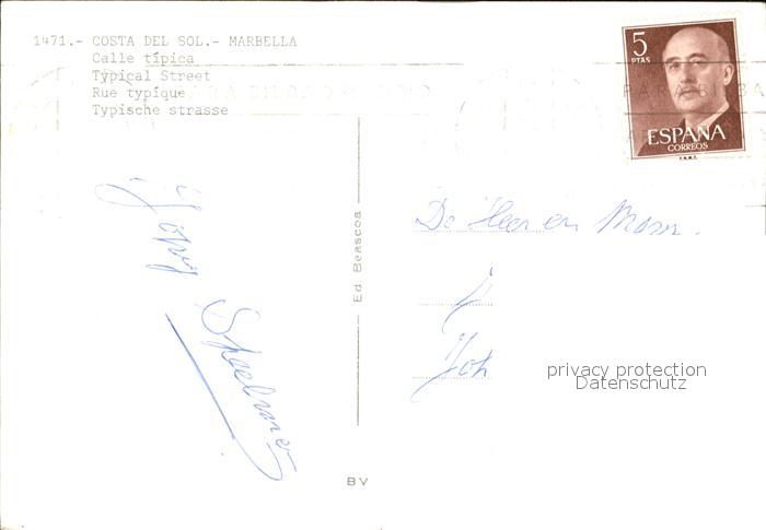 old postcard Marbella Andalucia Calle tipica postalisch gelaufen Erhaltung siehe scans
