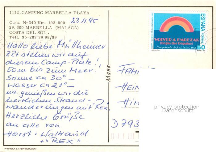 old postcard Marbella Andalucia Camping Marbella Playa Piscina postalisch gelaufen Erhaltung siehe scans [FriedD77]