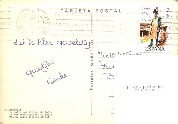 old postcard Marbella Andalucia G. Badia Strasse postalisch gelaufen Erhaltung siehe scans [AndreD76]