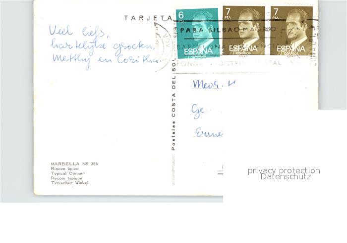 old postcard Marbella Andalucia Gasse postalisch gelaufen Erhaltung siehe scans