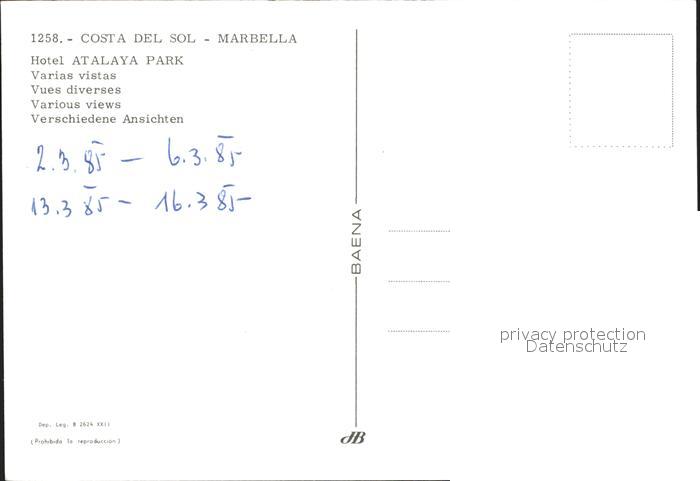 Marbella Andalucia Hotel Atalaya Park postalisch nicht gelaufen Erhaltung siehe scans
