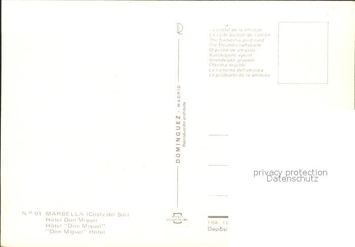Marbella Andalucia Hotel Don Miguel postalisch nicht gelaufen Erhaltung siehe scans