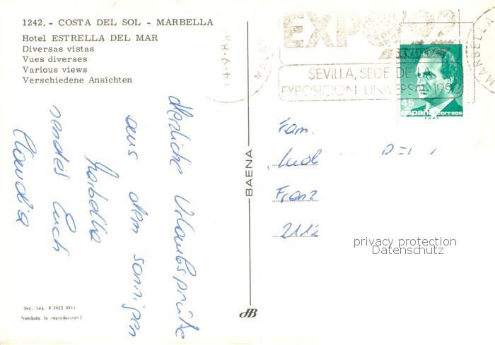 old postcard Marbella Andalucia Hotel Estrella del Mar Diversas vistas postalisch gelaufen Erhaltung siehe scans [WerneD78]