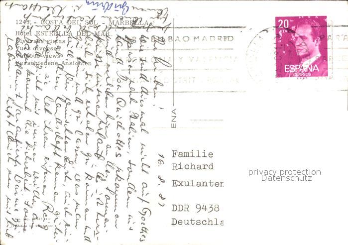 old postcard Marbella Andalucia Hotel Estrella del Mar Pool Zimmer Speisesaal postalisch gelaufen Erhaltung siehe scans [WerneD78 kv016box]