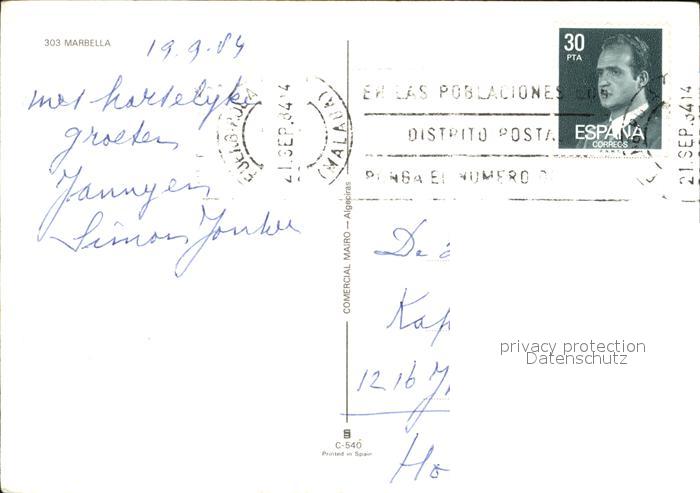 old postcard Marbella Andalucia Kleine Gasse postalisch gelaufen Erhaltung siehe scans