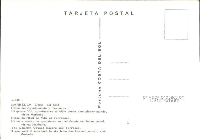 Marbella Andalucia Plaza del Ayuntamiento Terrazas postalisch nicht gelaufen Erhaltung siehe scans