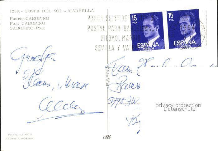 old postcard Marbella Andalucia Port Cabopino postalisch gelaufen Erhaltung siehe scans