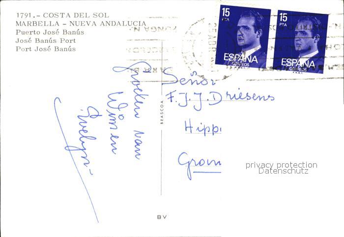 old postcard Marbella Andalucia Puerto Jose Banus postalisch gelaufen Erhaltung siehe scans [WerneD78]