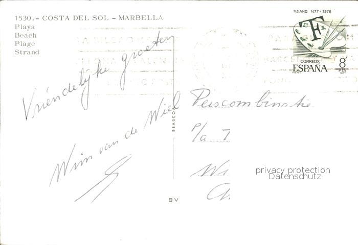 old postcard Marbella Andalucia Strand postalisch gelaufen Erhaltung siehe scans
