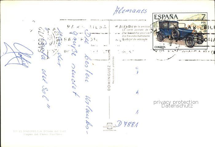 old postcard Marbella Andalucia Strand postalisch gelaufen Erhaltung siehe scans