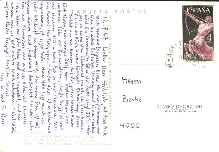 old postcard Marbella Andalucia Vista parcial postalisch gelaufen Erhaltung siehe scans