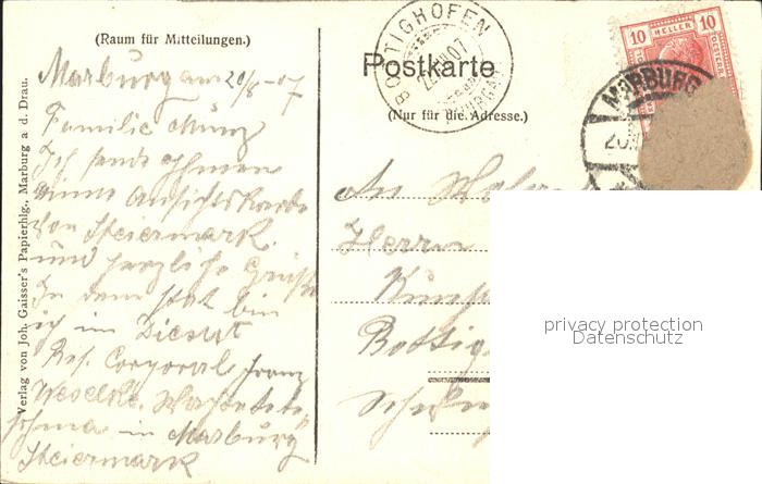 alte Postkarte Marburg Drau Maribor Totalansicht postalisch gelaufen Erhaltung siehe scans