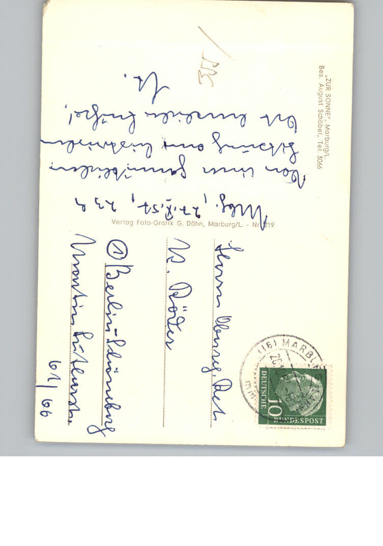 31131372 Marburg Gasthaus zur Sonne postalisch nicht gelaufen KatCode: